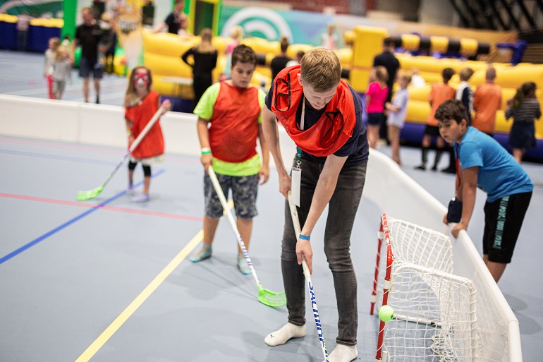 I den store idrettshallen står oppblåsbare trampoliner og hoppeslott klare for en ny dag, mens kaféarealet i tredje etasje er gjort om til «kreativt paradis». På bordene ligger hobbyartikler, ark og dekor som bare venter på å bli brukt. «Junior Point» er rigget og klart til å ta imot alle barn mellom 6 og 12 år som deltar på sommerstevnet.