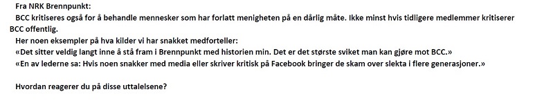 Forstår du at det å sende ut spørsmålene på denne måten kan oppfattes som at BCC ikke tåler kritikk?