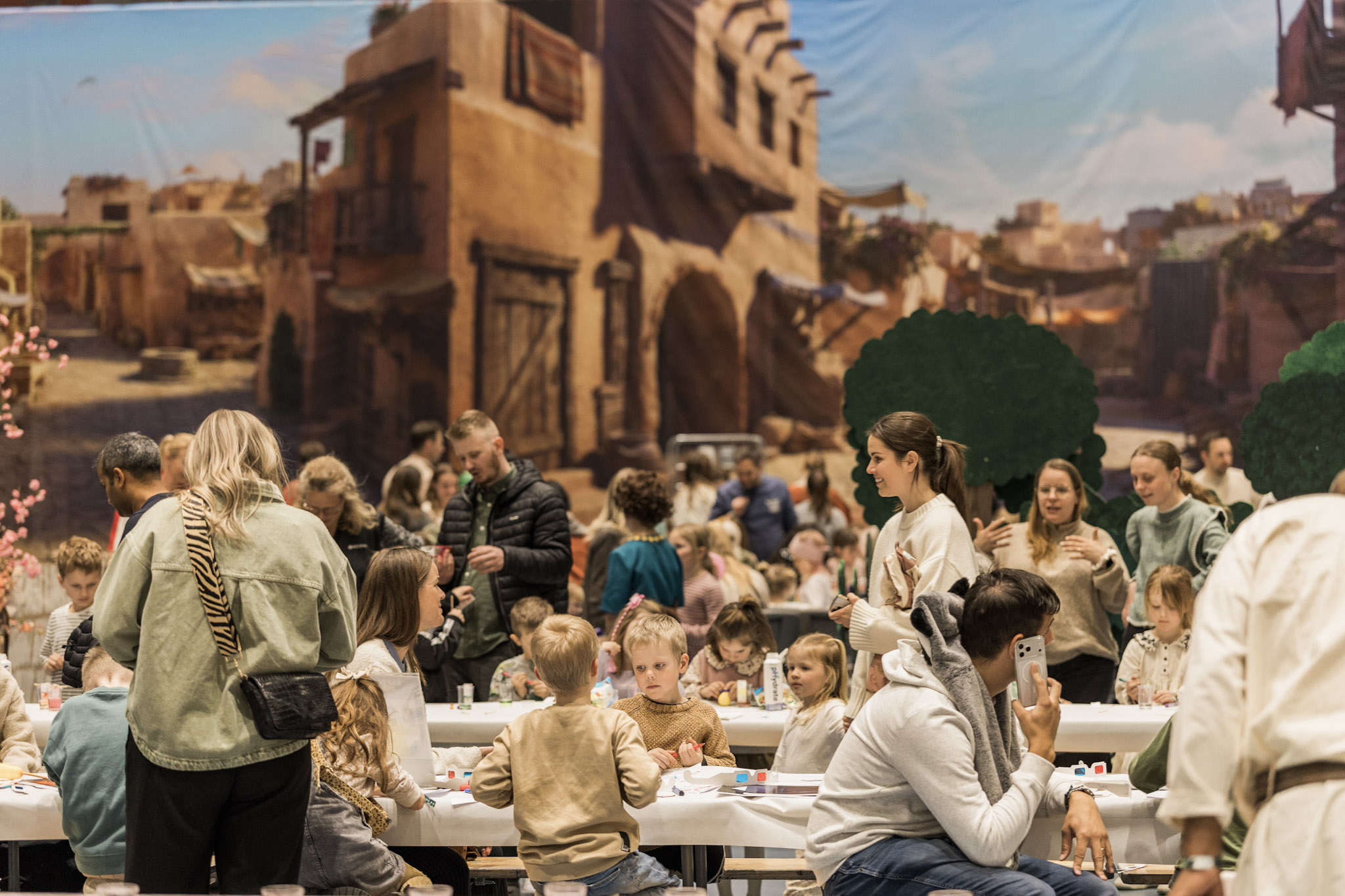 I «byen Dotan» er det nå liv og aktivitet. Barna beveger seg fra stasjon til stasjon og prøver ut det som tilbys.