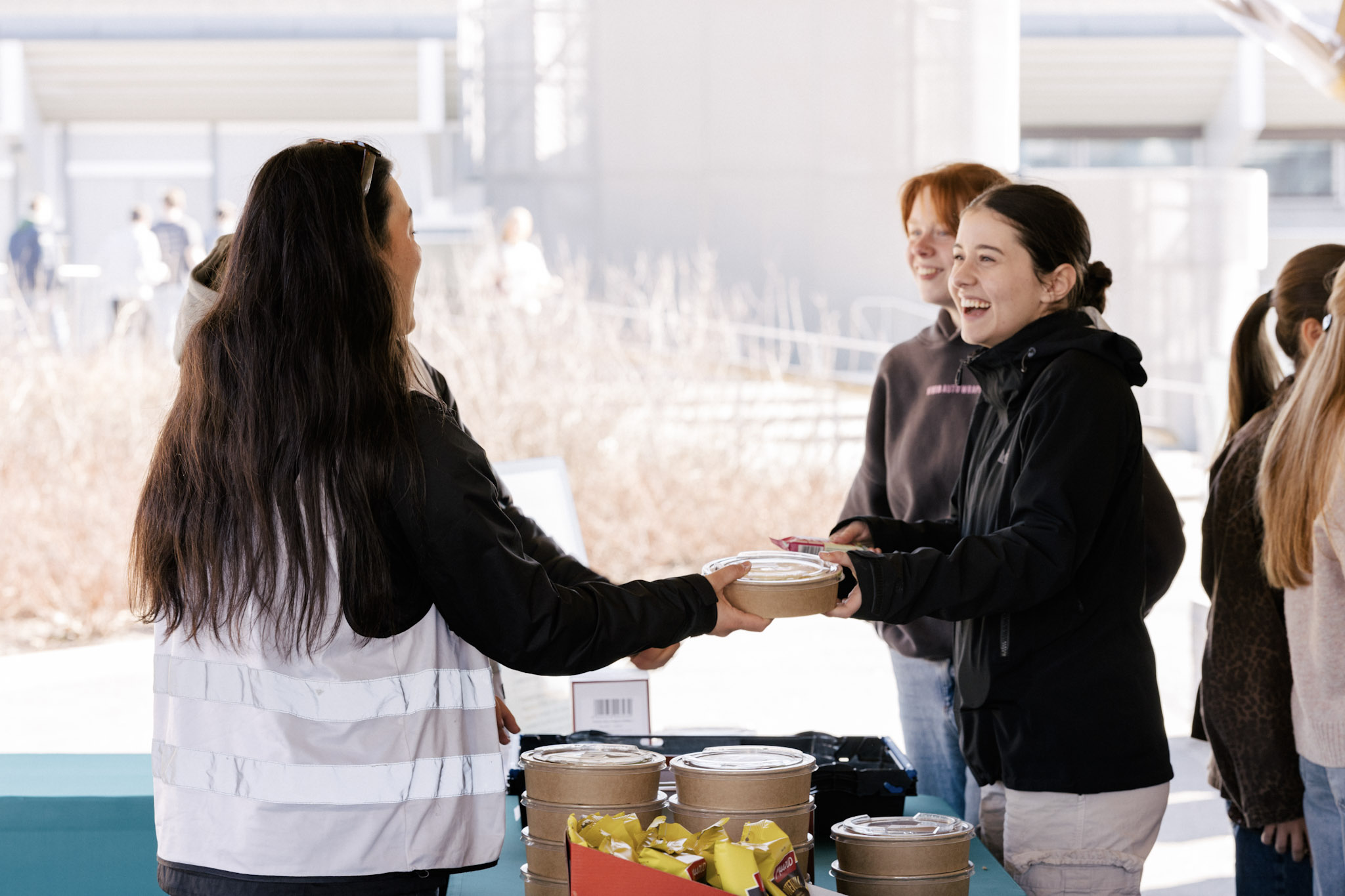 På første dag henter deltakerne seg mat til frokost.